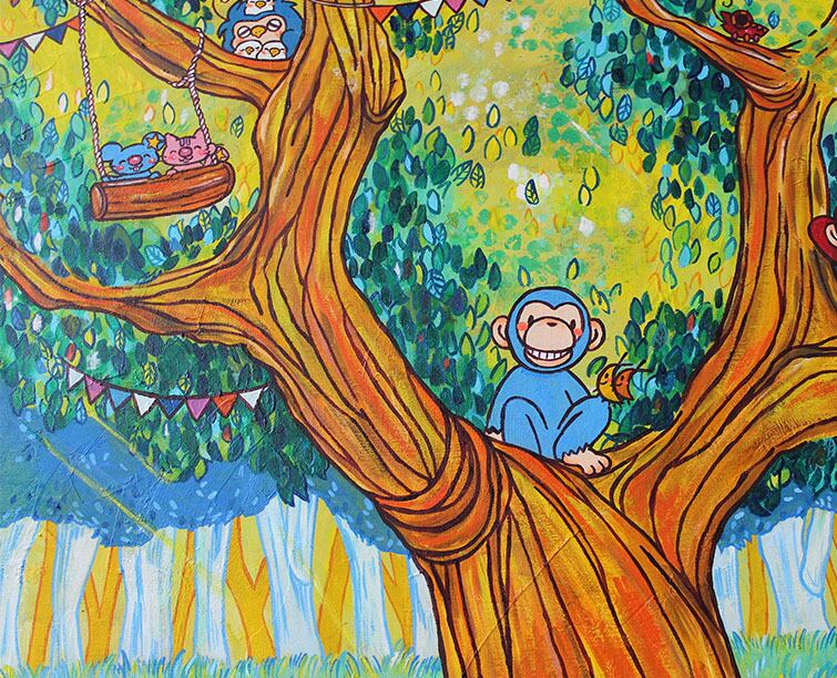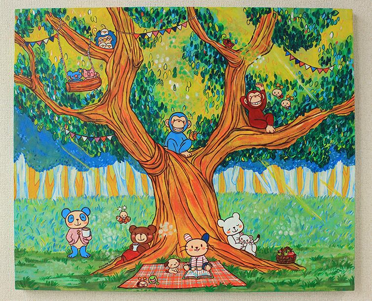 コンセプト:ここにいるみんなは、特別なことをするわけではなく、ただそこに集い、思い思いにリラックスしています。木漏れ日が降り注ぐ穏やかな時間をただただ共有しています。この空間は誰をも拒まない、安全で平和な場所。